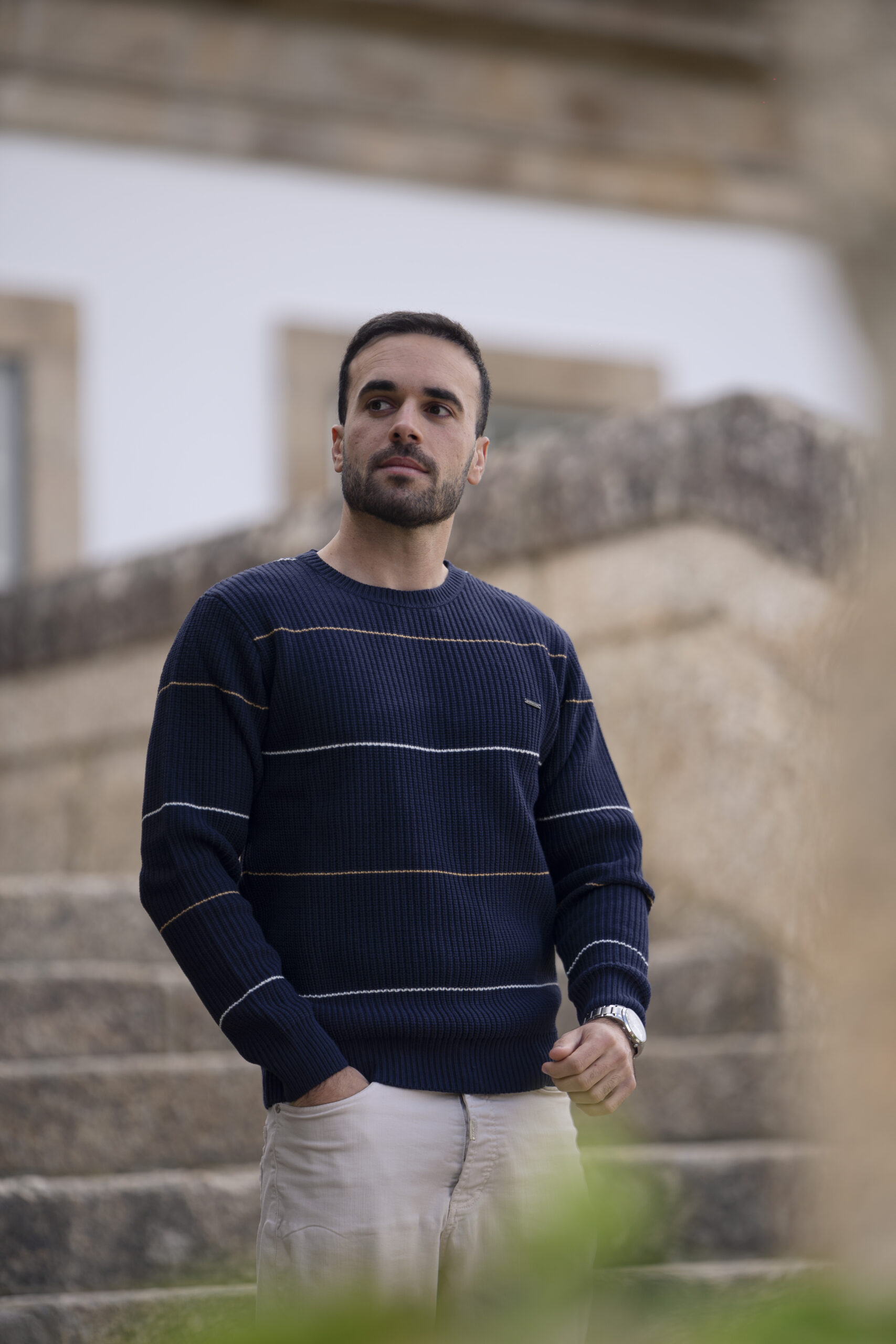Camisola azul com risca