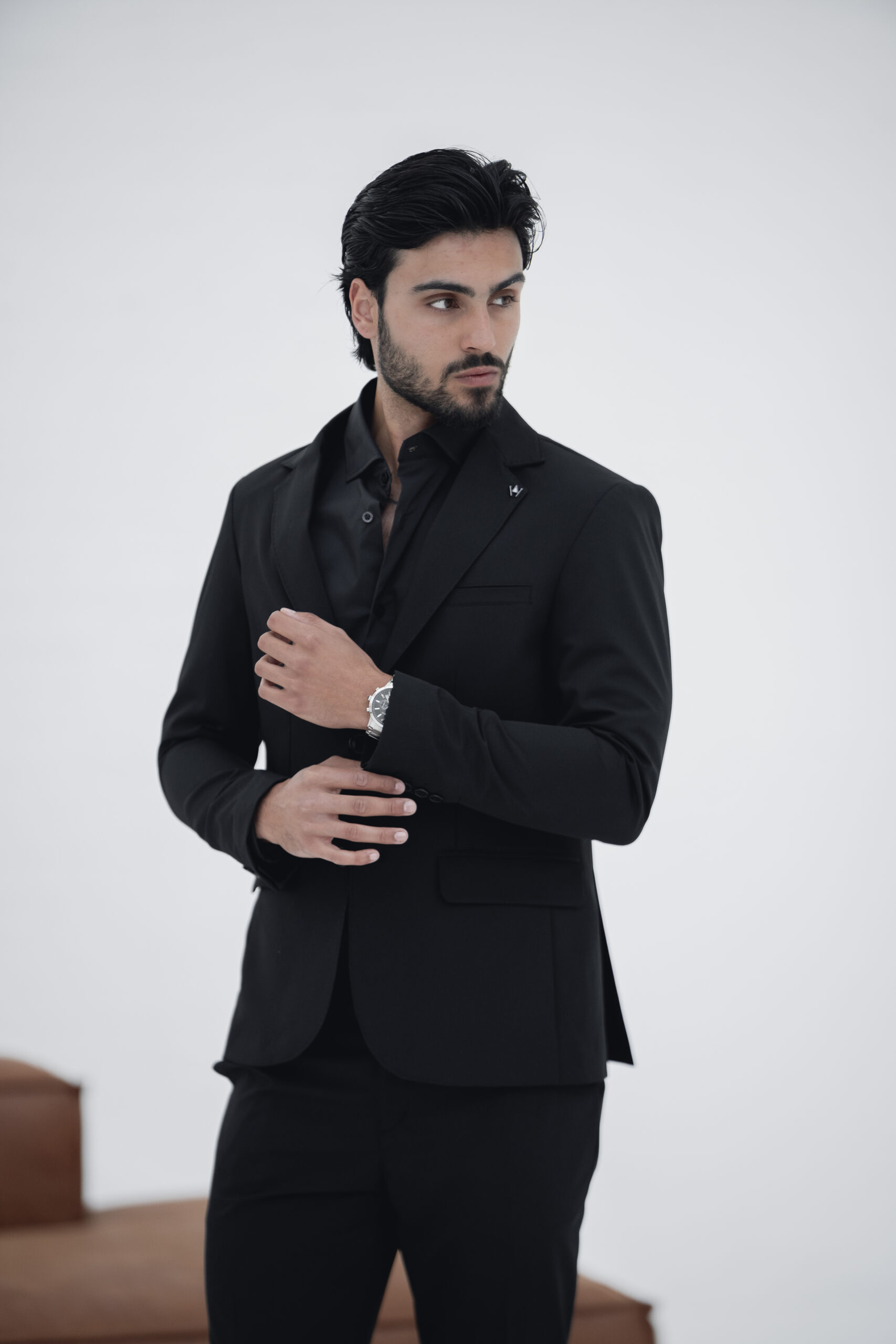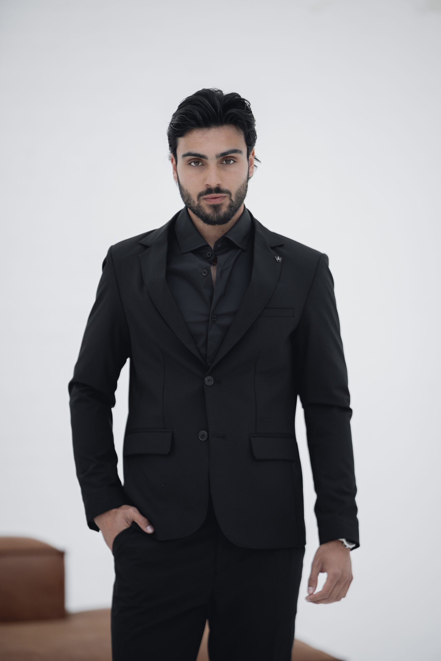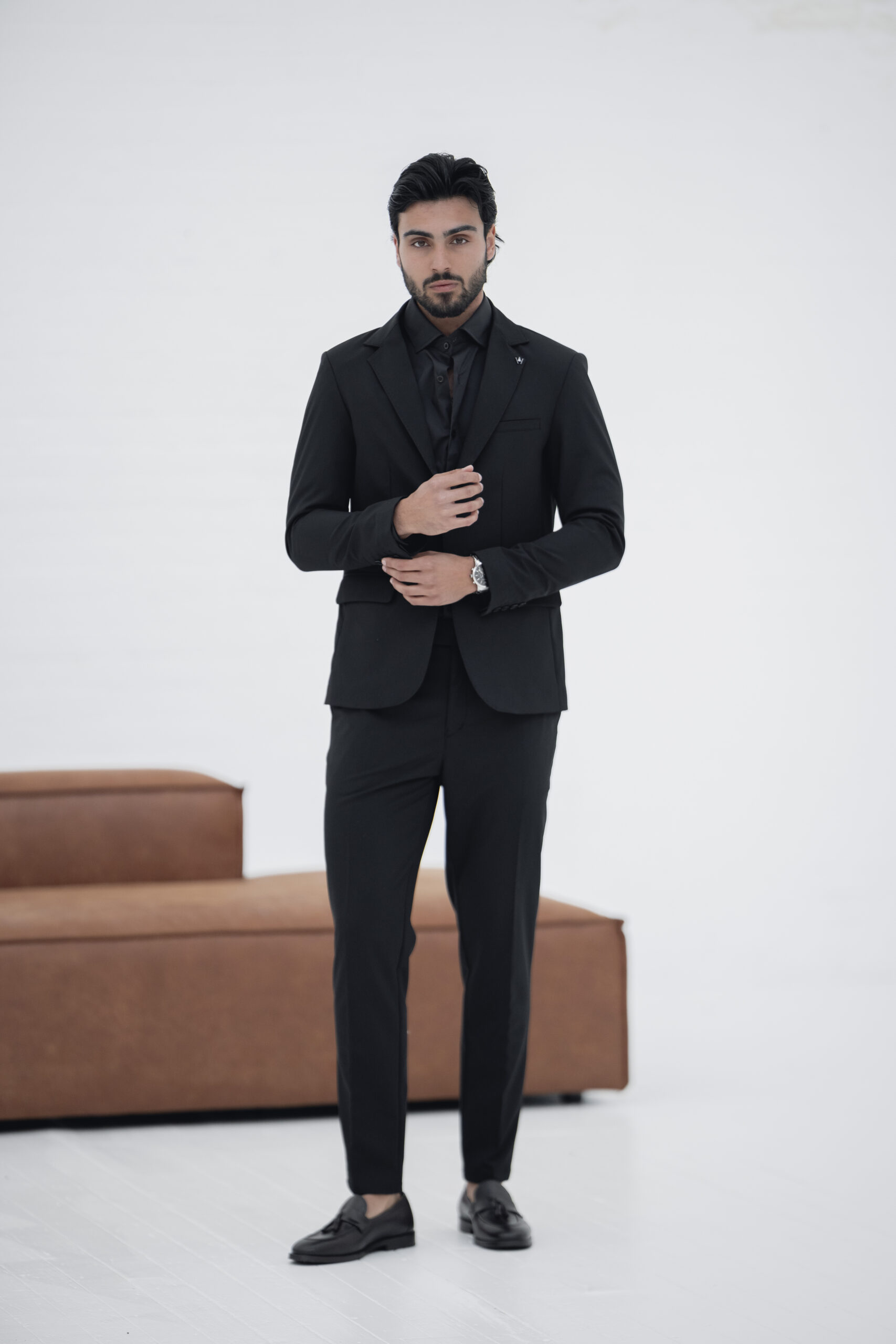 Fato slim fit preto elegante, pensado para homens que querem marcar presença em qualquer ocasião. Ideal para casamentos e eventos formais, combina um design moderno com conforto e ajuste perfeito.