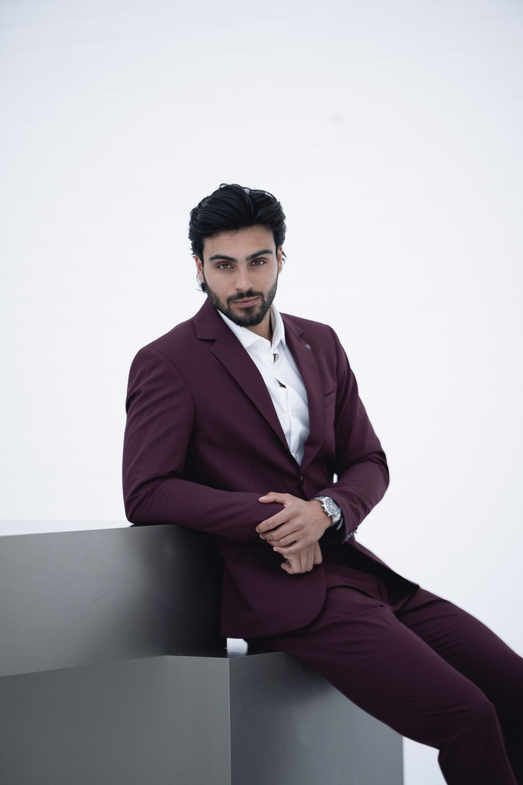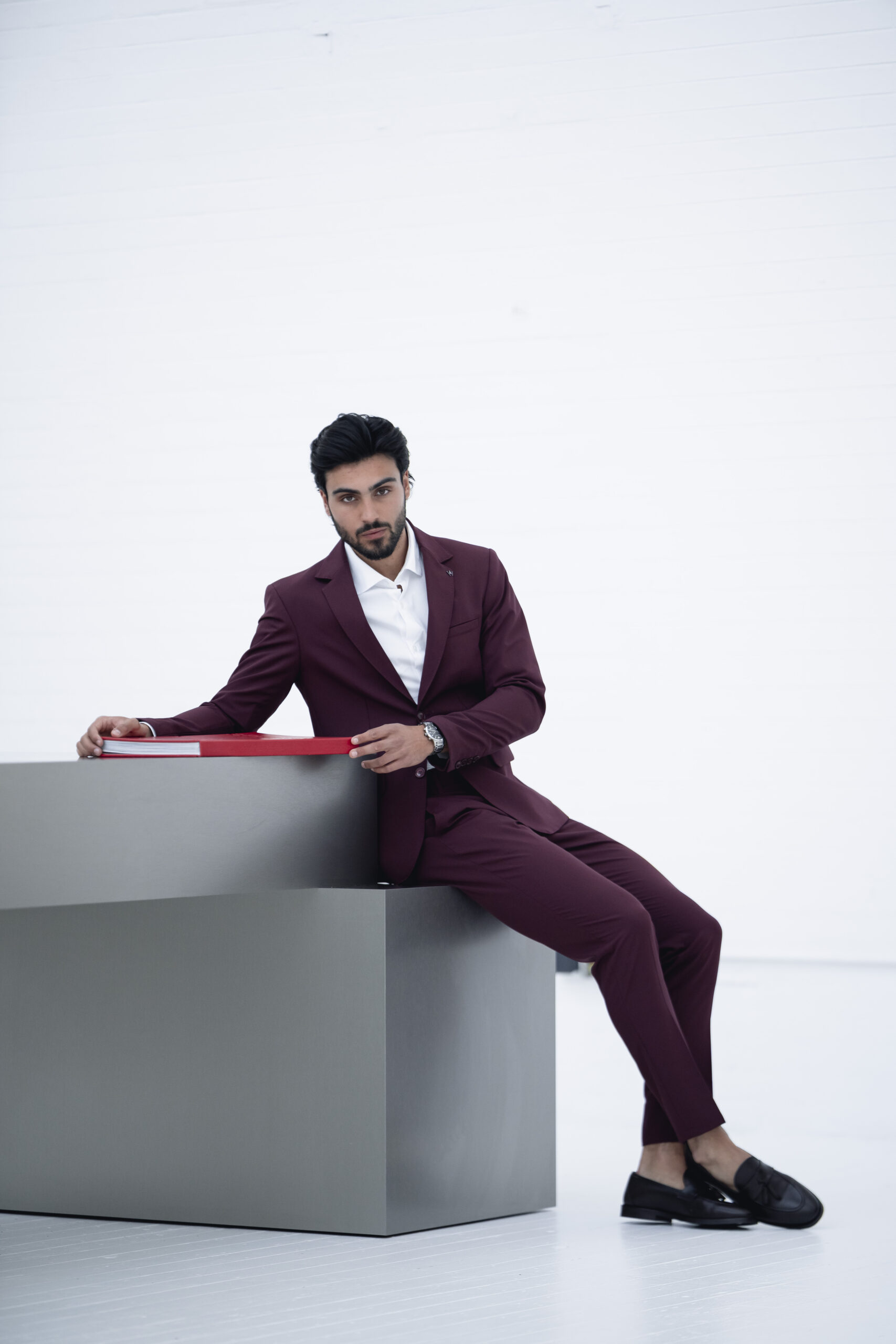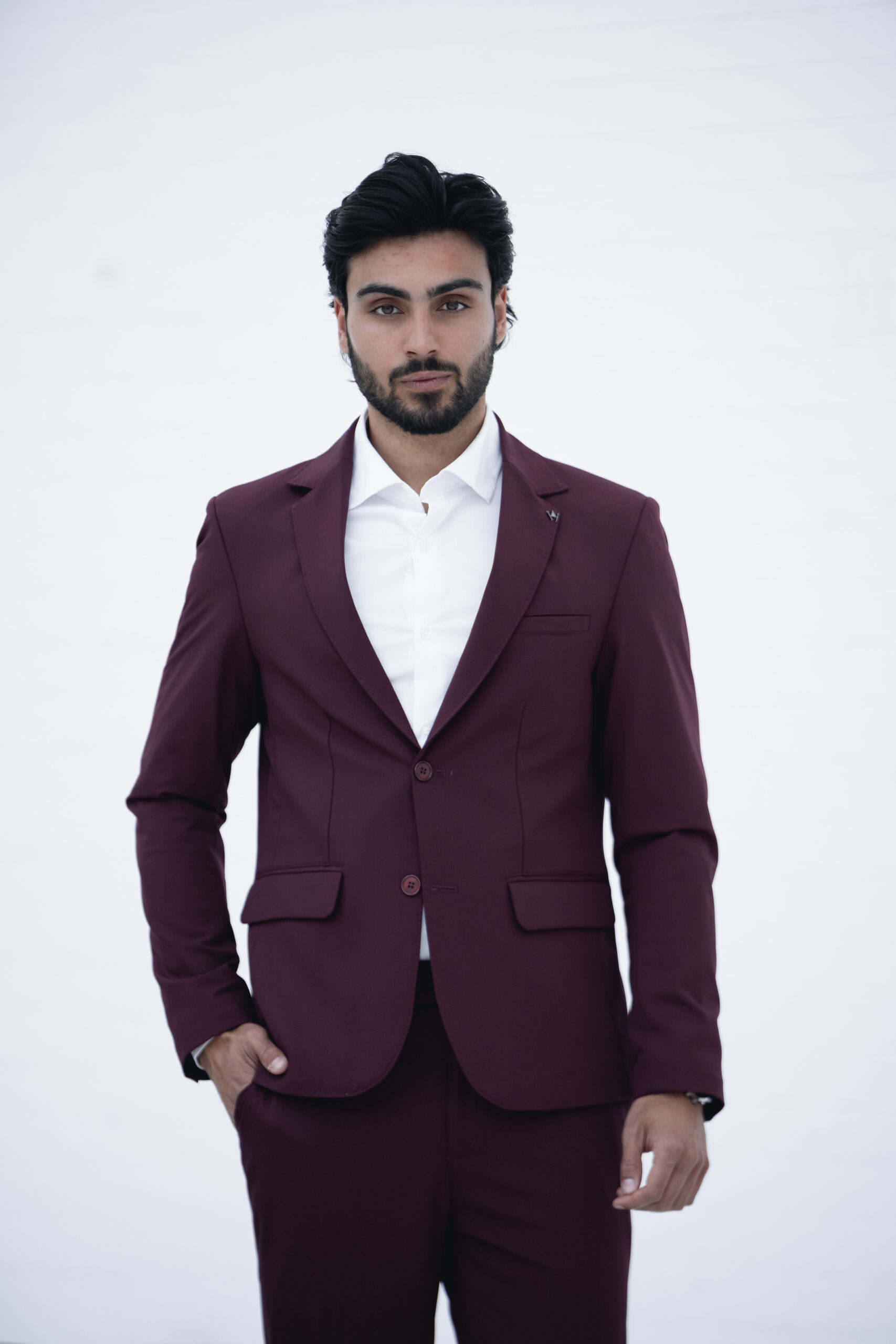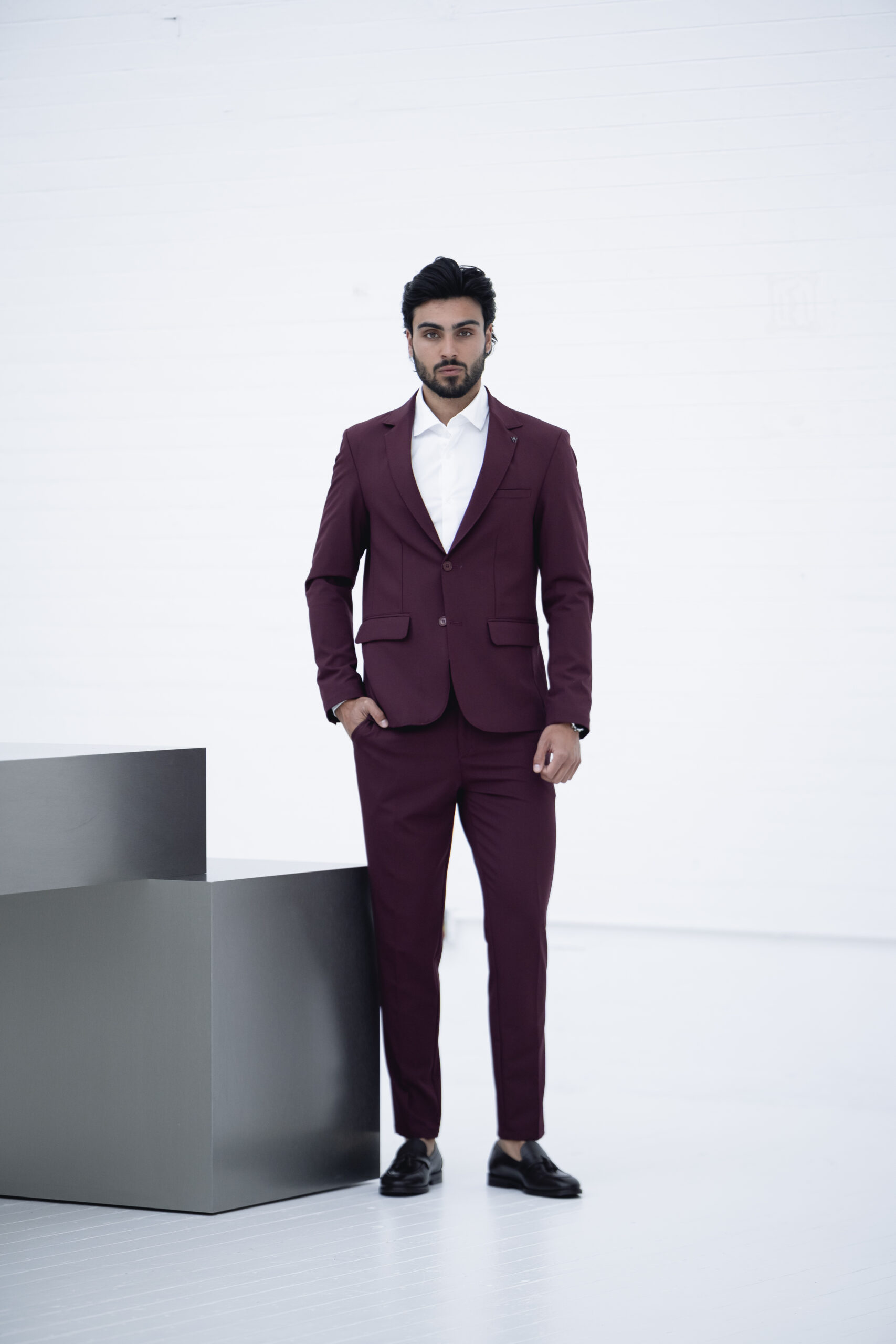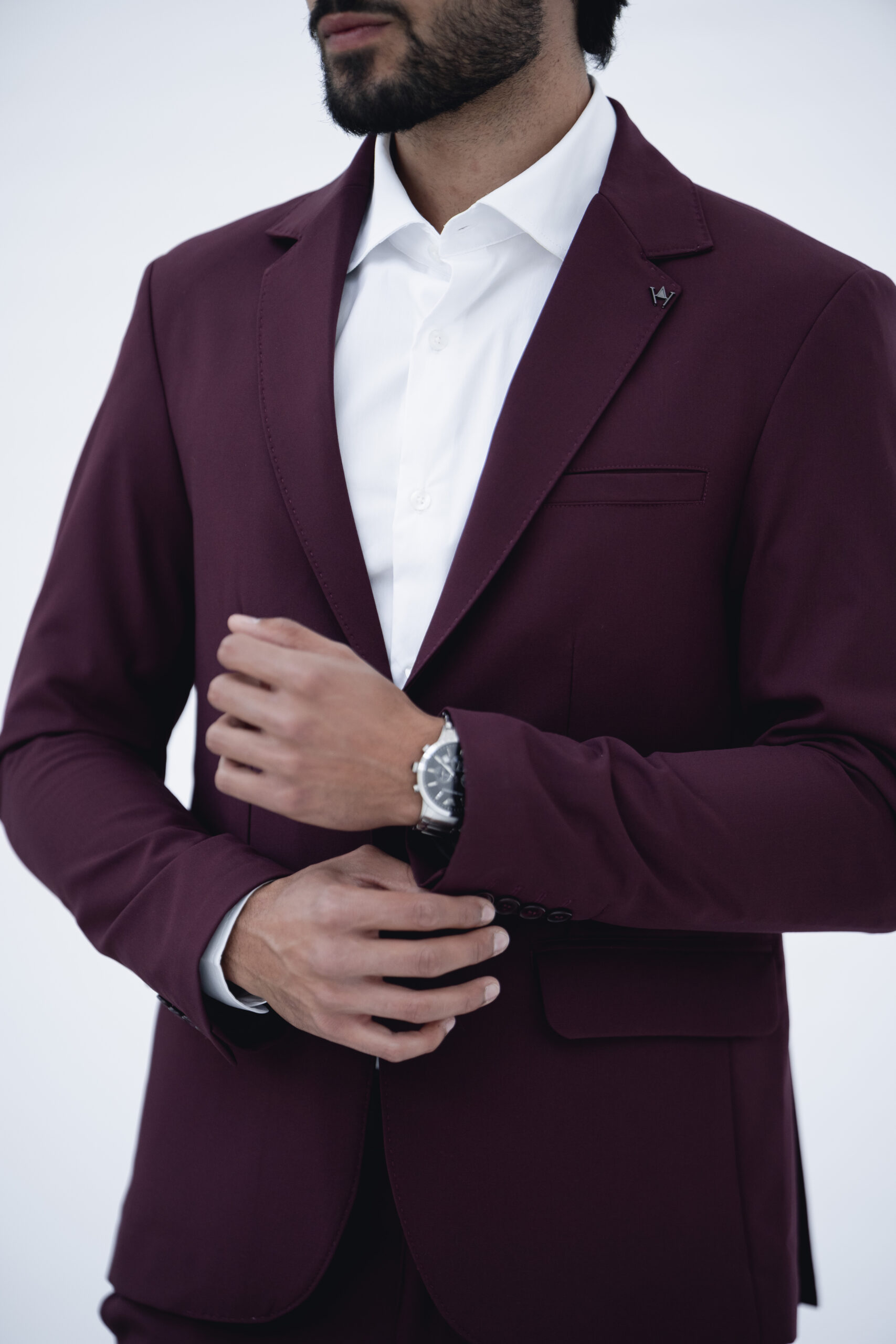 Fato slim fit bordô elegante, pensado para homens que querem marcar presença em qualquer ocasião. Ideal para casamentos e eventos formais, combina um design moderno com conforto e ajuste perfeito.