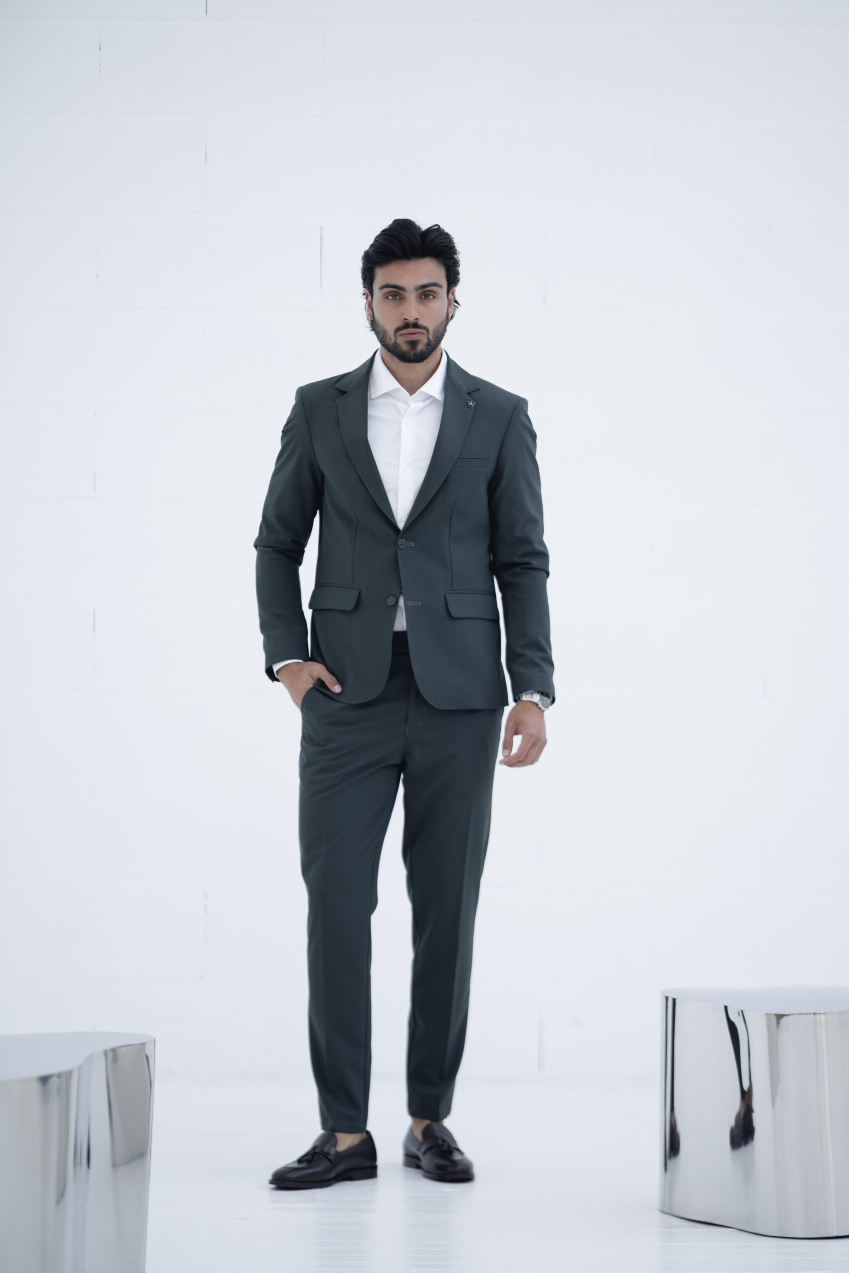 Fato slim fit verde elegante, pensado para homens que querem marcar presença em qualquer ocasião. Ideal para casamentos e eventos formais, combina um design moderno com conforto e ajuste perfeito.