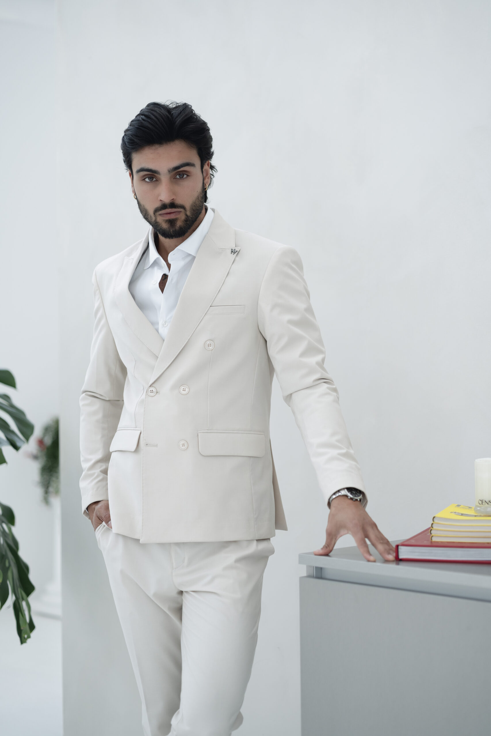Fato slim fit bege elegante, pensado para homens que querem marcar presença em qualquer ocasião. Ideal para casamentos e eventos formais, combina um design moderno com conforto e ajuste perfeito.