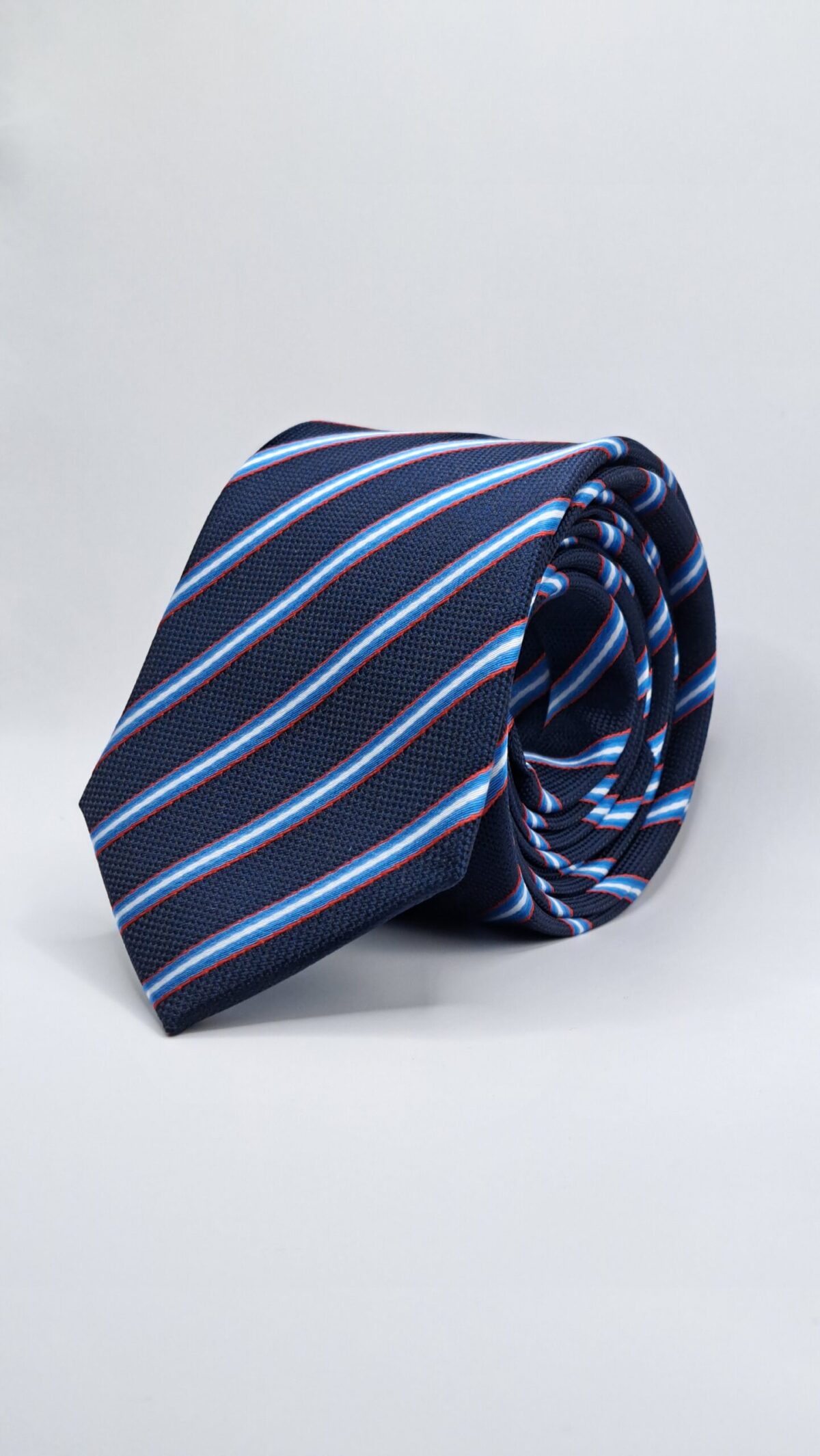 Gravata azul risca azul e vermelha