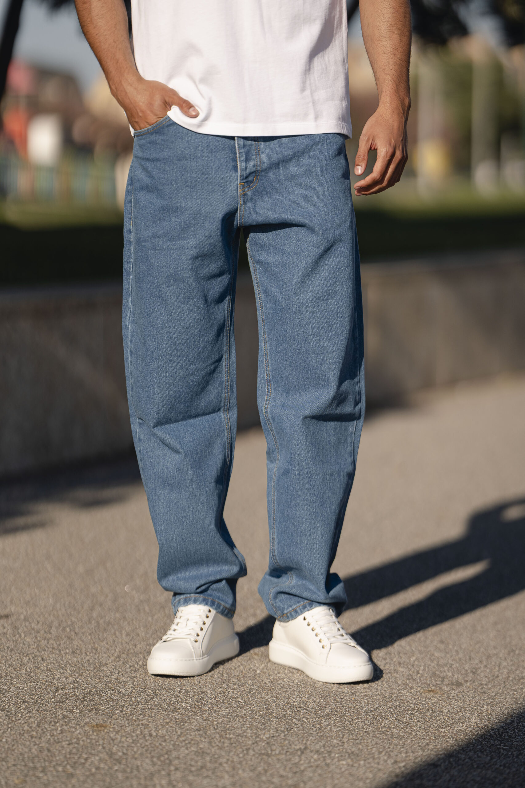 Com corte relaxed fit e lavagem azul clássica, oferecem liberdade de movimento e um caimento moderno, ideal para looks urbanos e descontraídos.
