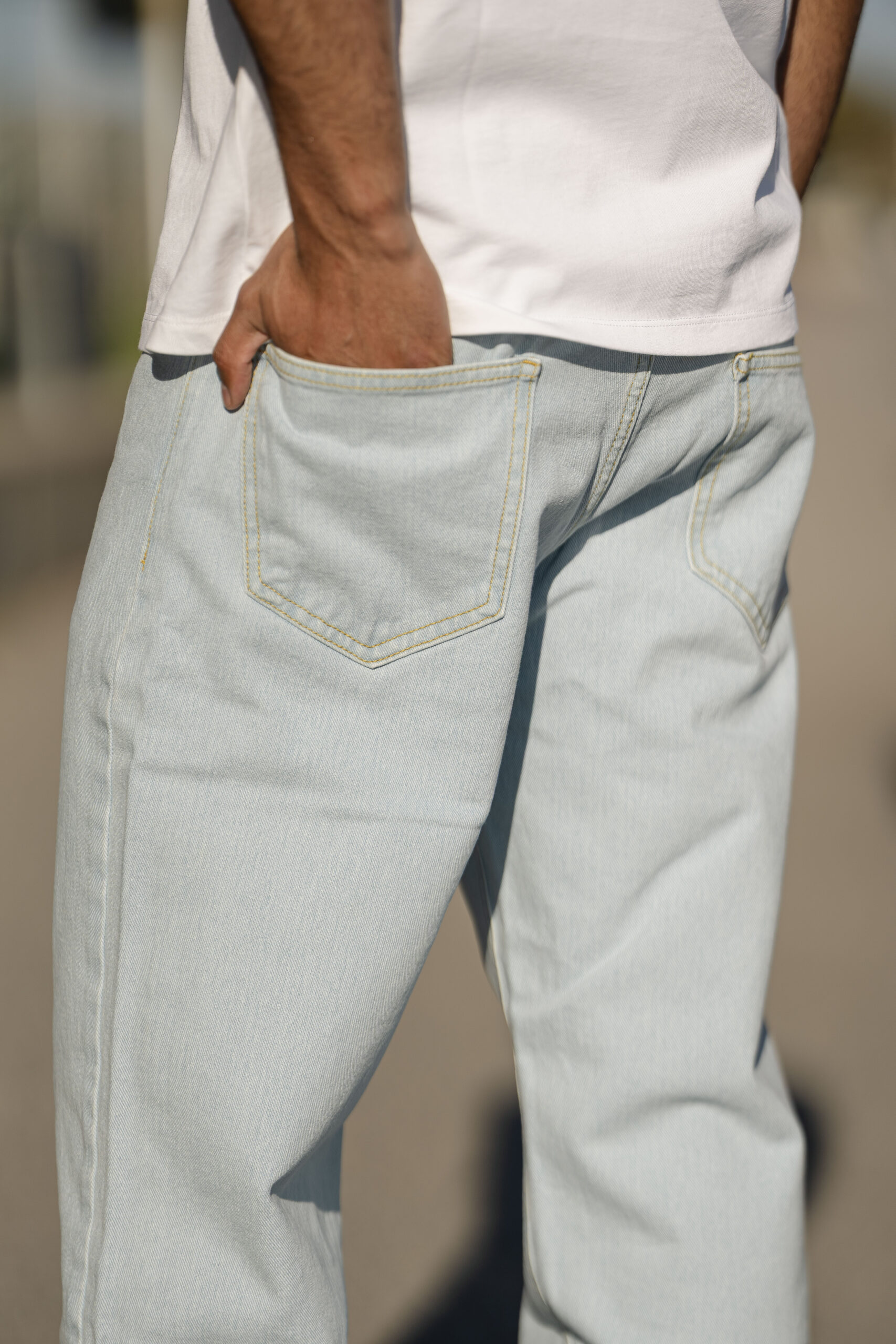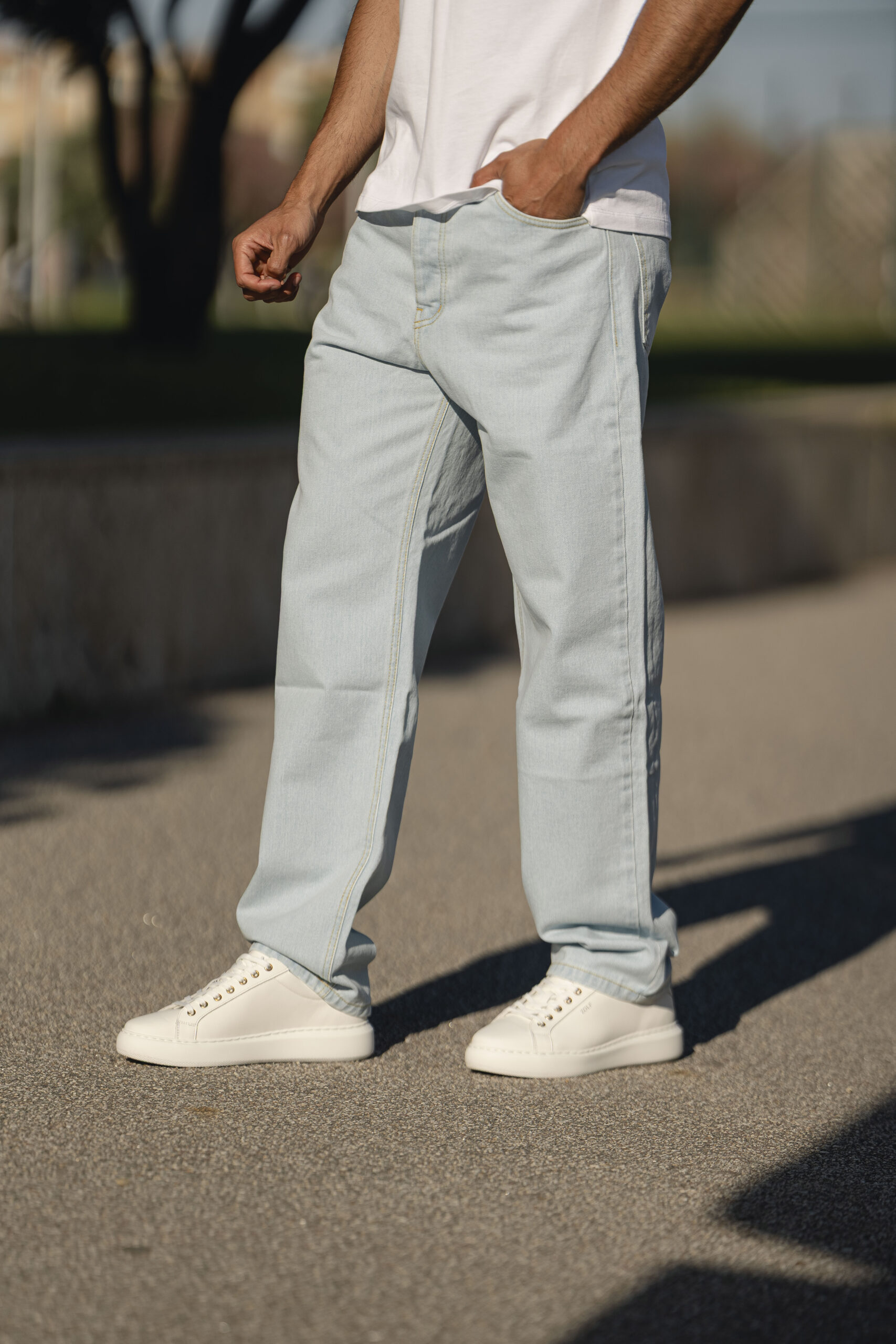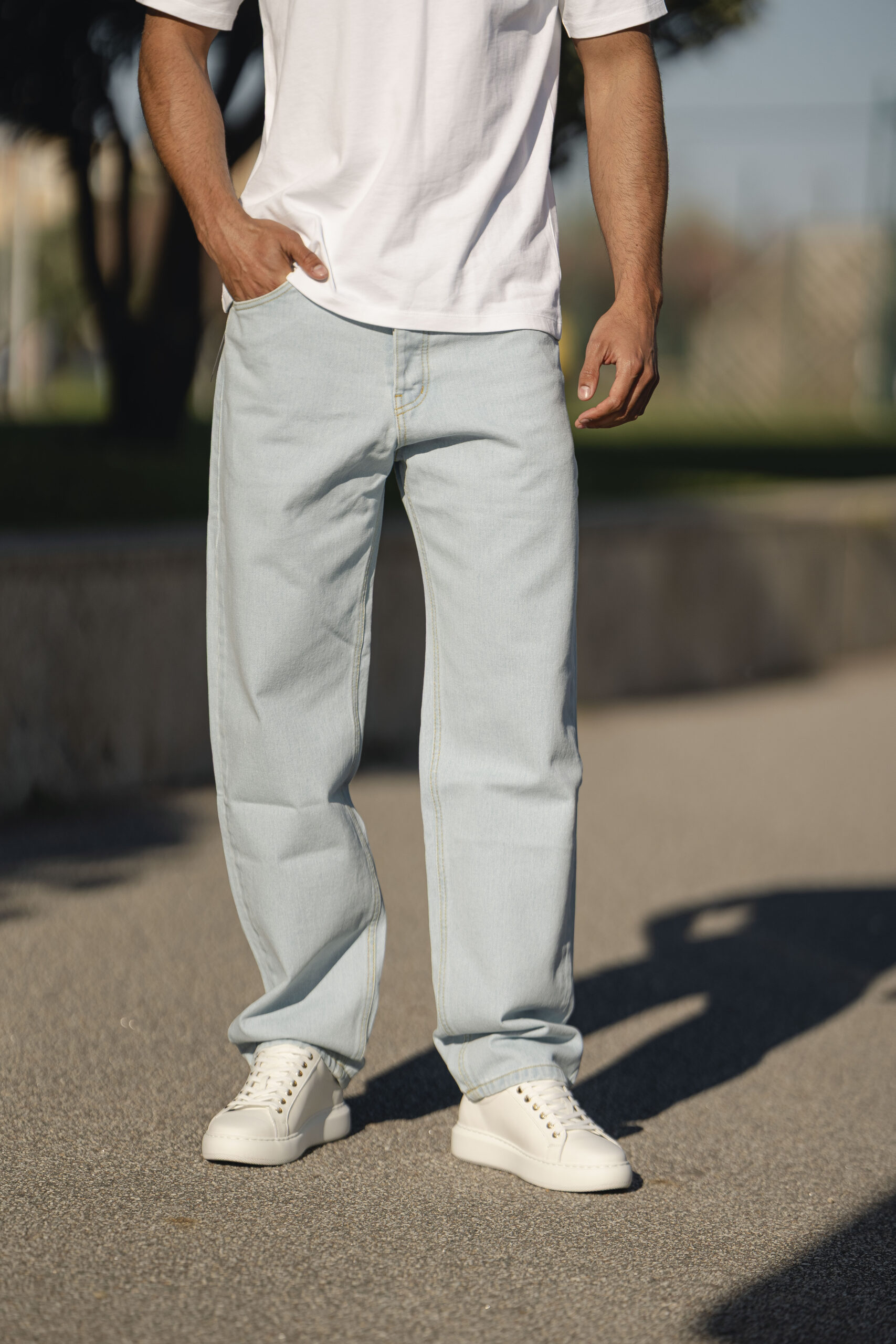 As Jeans Relaxed fit com uma tonalidade super clara foram criadas para homens que valorizam conforto, leveza e estilo moderno.