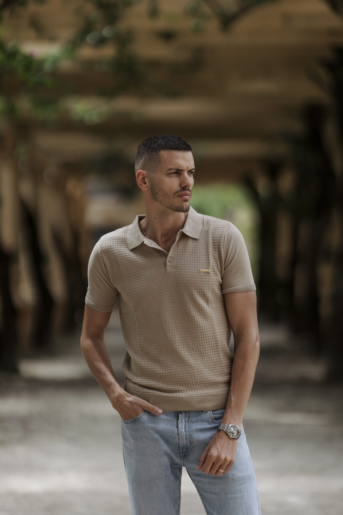 Este pólo em tricot é a combinação perfeita entre sofisticação e conforto. Com um caimento perfeito, textura elegante e detalhes que elevam o visual, é a peça ideal para quem sabe que a presença se constrói nos detalhes.